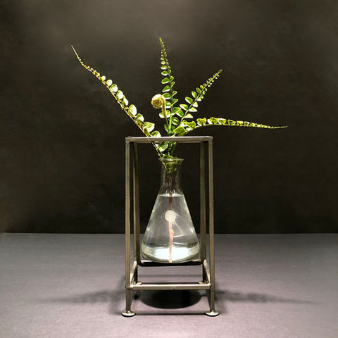 Incorporating found objects, repurposed science paraphernalia, and vintage laboratory glass capable of holding liquid.